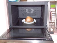 ![]() 2.電子レンジにいれ加熱する(ホッキ貝はむくのが難しい為)。目安として一個あたり500wで約40秒ほど。 |