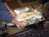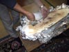 全体が均一に覆われたらアルミホイルで巻き込み、更にもう一度アルミホイルで巻き込んで準備完了。