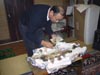 鮭のお腹に冷めた味噌を詰め、残りの食塩で鮭を覆います。
