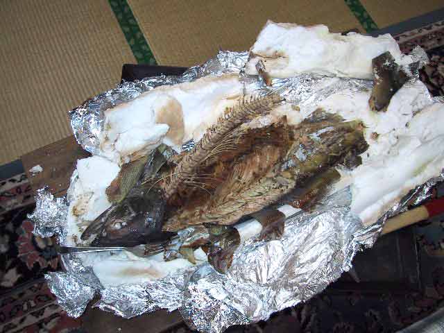 上の半身を食らった後は、中骨を取り除き下の半身を食らう。