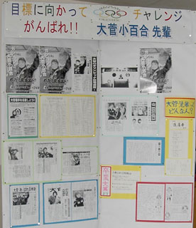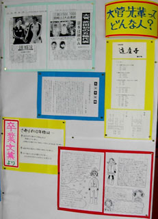 教頭先生が中心となって、切り抜きや卒業文集などで母校の先輩を紹介していました。