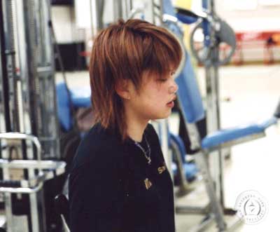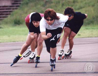 さて、私ライター米田がお邪魔した日のメニューは、午前中がスラップ式のローラースケートを使ったトレーニング。昼食と午睡をはさんで、午後は白樺学園でウエイトトレーニングをした後、クールダウンのために市のプールで軽い水泳トレーニングを行いました。