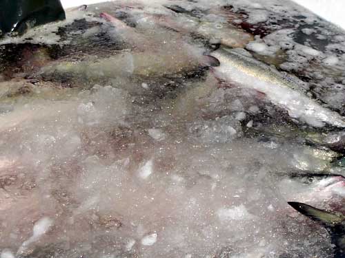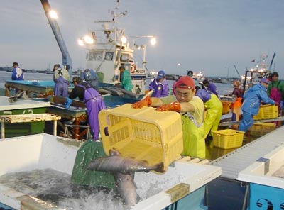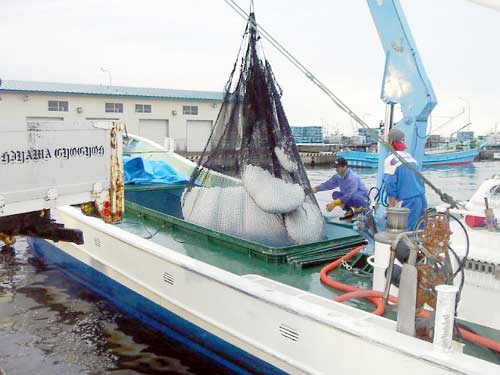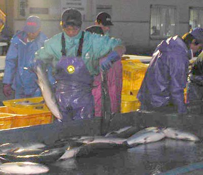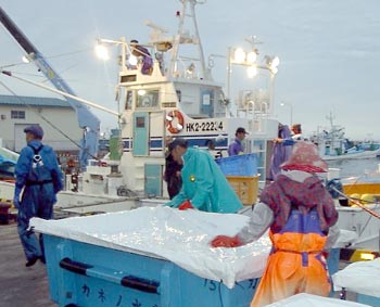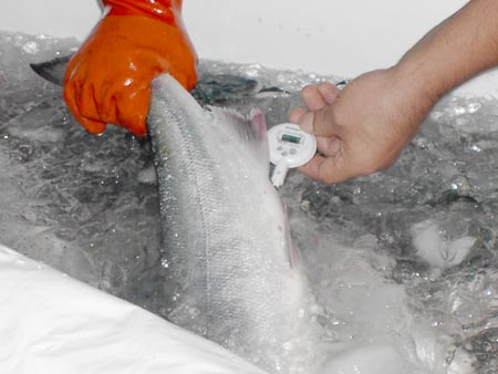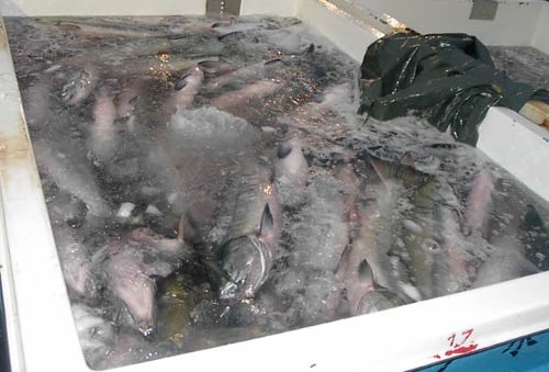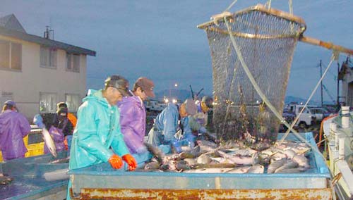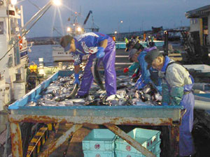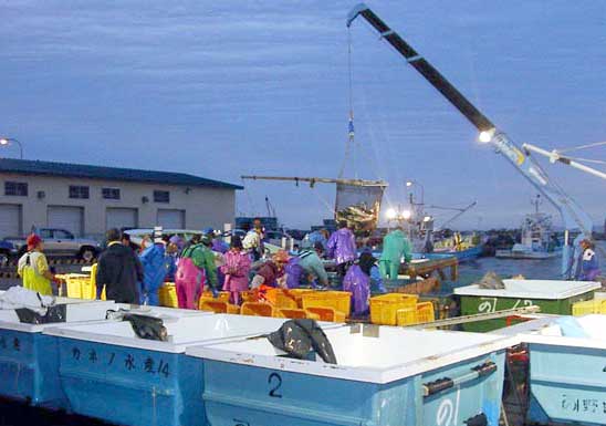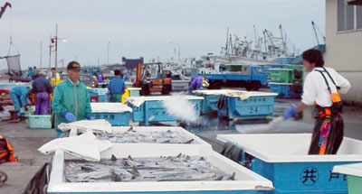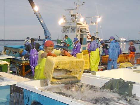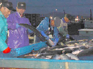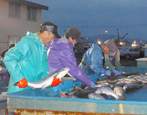アキアジ(秋鮭)(chum salmon) 7月から12月にかけて漁獲され、十分に成熟しているシロザケで、一般に切り身や新巻などで広く流通している。 オス・メスの他に「ギン」「ブナA」「ブナB」「ブナC」等にランク分けされてセリにかけられる。 脂肪分は成熟の度合により少なくなり、淡白で様々な料理の材料となる。また、塩蔵による旨み成分の増加が科学的にも認められ、「山漬け」等の新巻も出回っている。